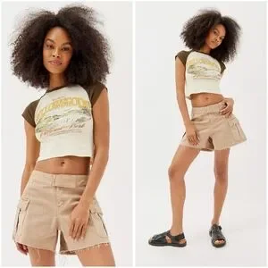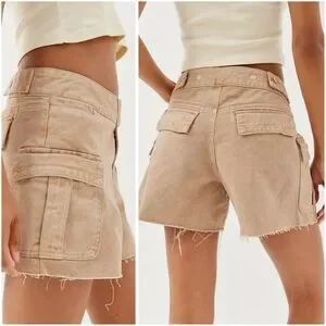 tags: shorts, cargo, khaki, raw, frayed, rigid, denim, jean, low rise, relaxed, summer