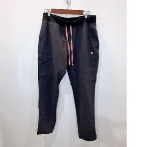 FIGS Yola Skinny Scrub Pants Women's Size Large Charcoal Gray Pink Drawstring