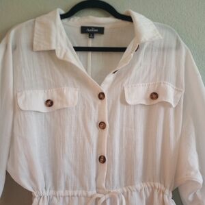 Aakaa Linen Blend dress with fully lined skirt, Drawstring Adjustable Waist, Balloon Hem Slleeves, Flowy Flounce Pleated Skirt Hem, Tennis Prep, Feminine, Girl Era, Coquette Girl, Coastal Grandma, Bohemian, Casual, Athleisure
