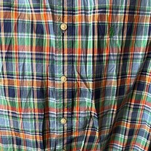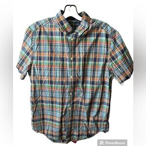 Ralph Lauren Button Up Shirt Youth XL 18-20 Plaid Boys Short Sleeve 100% Cotton