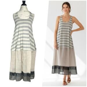Tanto Mar | Women | Mix Media Linen Jersey Lagenlook Racer Back Midi Dress | OS