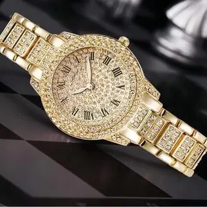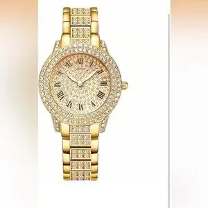 Chic gold watch with silver accents. Perfect for any outfit. Sparkling design adds elegance.