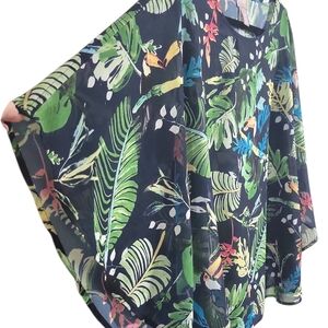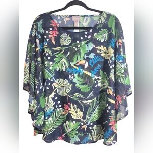 Chico's Tropical Sheer Poncho Cover-up Top Size Sm/Med Colorful Birds