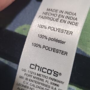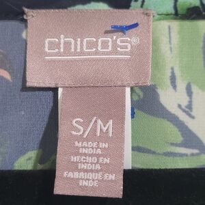 The Chico's Tropical Sheer Poncho Cover-up Top in size Small/Medium is a vibrant and stylish addition to any woman's wardrobe. Featuring colorful bird motifs on a sheer fabric, this top is perfect for adding a fun and tropical touch to your outfit. The Chico's brand ensures quality and style that will make this cover-up top a versatile and fashionable piece for any summer wardrobe.