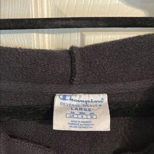 Size large new with tags Champion black reverse weave hooded sweatshirt. Stretch side panels, heavyweight fleece. Signature ribbed trim, drawstring waist, slightly cropped. Kangaroo pockets. Experience the timeless style of the Champion Black Classic Crew Neck Sweater, crafted for both comfort and versatility. This sweater features a simple yet elegant design, perfect for any casual occasion. Made from a soft knit blend, it ensures a cozy fit that complements any wardrobe.