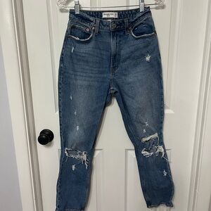 Abercrombie & Fitch High Rise Mom curve love Jean Size 0 25 Distressed