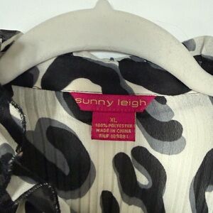 Stylish ruffle blouse with a bold black and white pattern. Long sleeves and elegant design. Perfect for any occasion.
