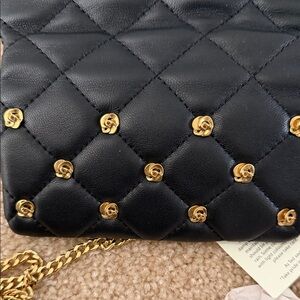 Versatile by design, this bag can be worn as a crossbody with its reminiscent gold chain strap or carried as a clutch, making it perfect for travel, weddings, parties, or everyday elegance. Brand new and absolutely beautiful, this designer piece is a must-have for any fashion forward woman who loves refined style with a unique twist.