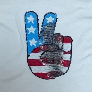 GAP Peace Sign Flag Short Sleeve Flippy Sequin Tee, Size XL, MSRP $22