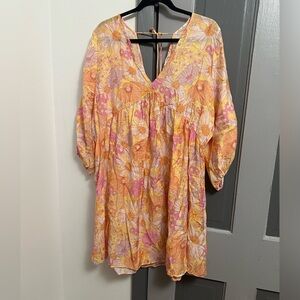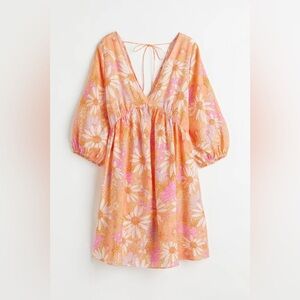 H&M Mini floral dress with V-neckline, long sleeves, and elasticated cuffs
