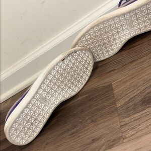 Vibrant violet suede sneakers. Features cream detailing. Ideal for everyday style.