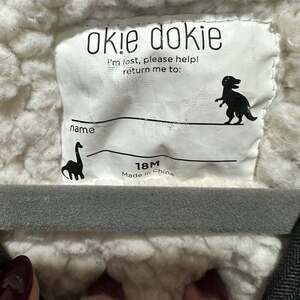 Keep your little one warm and cozy in this Okie Dokie gray winter parka, size 18months. This parka features a soft shearling lining for ultimate warmth and a removable hood for versatile wear. Perfect for chilly days, its durable design ensures comfort and protection. The coat is in excellent used condition with minimal signs of wear.