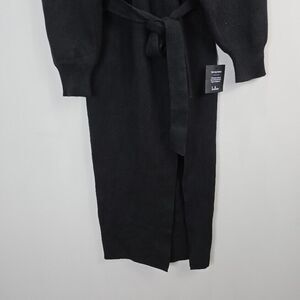 Lulus Midi Dress Size Large Black Knit Faux Wrap Backless Side Slit