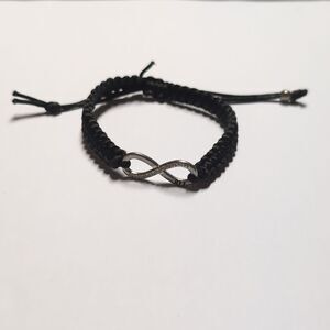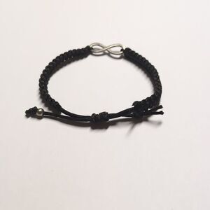 190 Black Woven Adjustable Slider Bracelet with Infinity Rhinestones BFF Charm