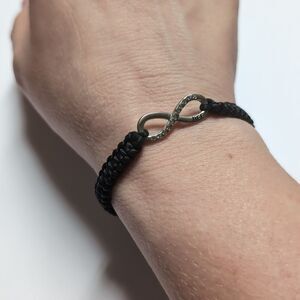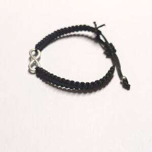 Black Woven Adjustable Slider Bracelet with Infinity Rhinestones BFF Charm