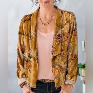 Chaser Silk Blend Floral Velvet Oversized Fit Blazer boho Maximalist
