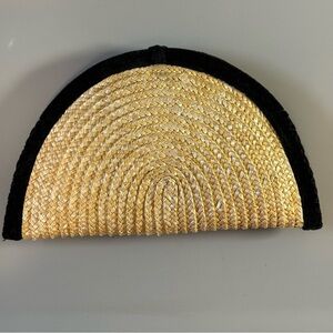 Stylish wicker clutch with black velvet trim. Perfect for any occasion.