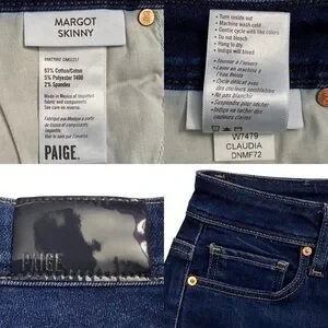 Paige Margot Skinny Jeans Denim High Rise Skinny Leg Dark Blue Wash 24
