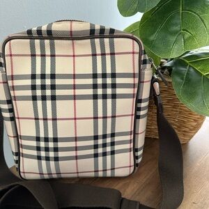 Elegant Burberry messenger bag with iconic check pattern. Features a sleek design and adjustable strap.i struggle to find actual callouts, but view the pictures thoroughly and see for yourself! Love this bag! Great size and style for everyday use!