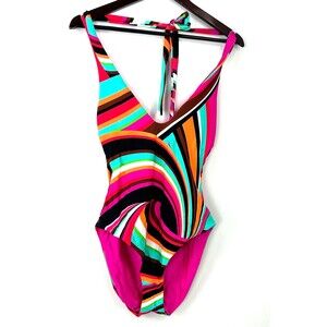 New Trina Turk Swoop Reversible Halter One Piece Swimsuit Womens Size 8 1408T4