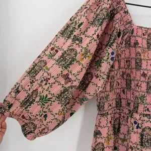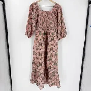 NWT Printfresh Florence Dress Gilded Greenhouse Print L Organic Cotton Midi Pink