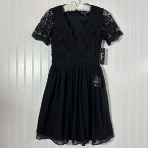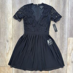 NWT Lulus Black Lace Skater Dress Sz XS LBD Crochet Lace Mini Angel in Disguise