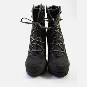 A lofty take on a rugged silhouette, DKNY's Lenni lace-up booties shine with silver-tone hardware dressing up the laid-back look.