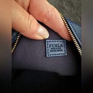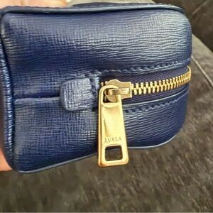Furla authentic Navy Leather Zip Pouch gold hardware NWT
