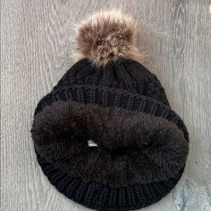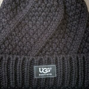 Stylish jet black knit hat by UGG Australia. Features a soft brown faux fur pom pom and super soft warm fleece lining. Perfect for keeping stylish and warm.