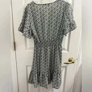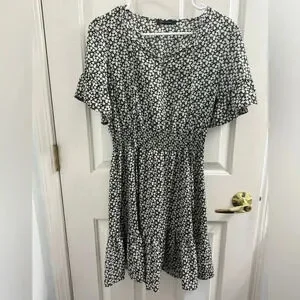 Amazon women’s short sleeve v neck ruffle floral print mini skater dress size s