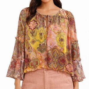 Fig & Flower Paisley Print Yellow and Red Women's Top