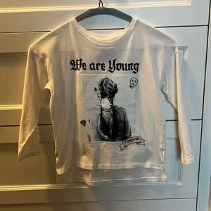 Zara Girls’ “We Are Young” White Long-Sleeved Top