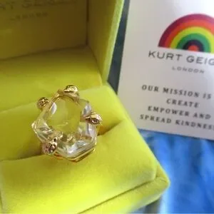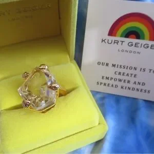 Stylish Kurt Geiger ring with a crystal accent on a gold band. Ideal for a chic look.