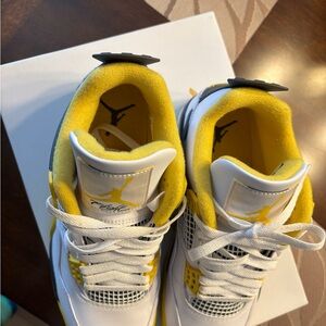 Women’s white and Yellow Air Jordan 4 Sneakers