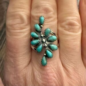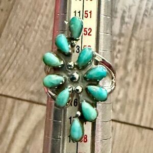 Kingman Turquoise 925 Sterling Silver Ring Statement Southwestern Floral Cluster