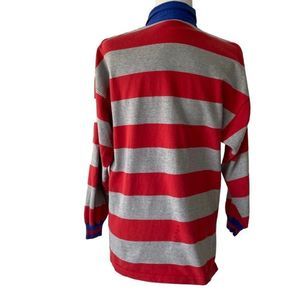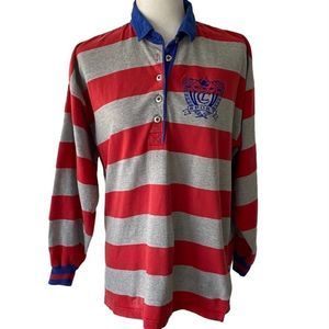 Liz Claiborne Vintage Lizwear Red Gray Cotton Striped Polo Long Sleeve Shirt L