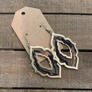 Stylish silver earrings with a vibrant multicolor leaf design. Ideal for adding a pop of color.