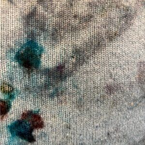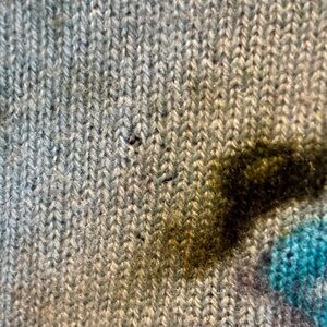 Galadriel Mattei 100% reclaimed cashmere in a size small. I see three small holes and some minor piling. Can be seen in photos. Beautiful sweater.