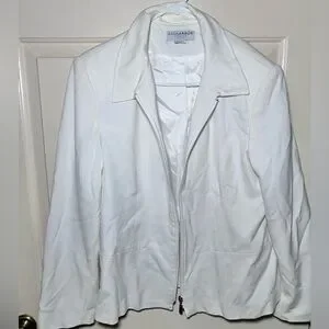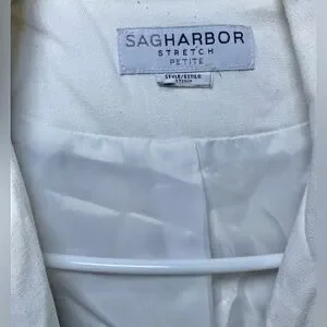 Vintage White Sag Harbor Women’s Stretch Zip Up Blazer Jacket Petite L/XL