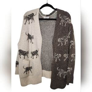 Talulah Tiger Print Colorblock Cardigan Sweater Medium Cozy Animal Print Knit