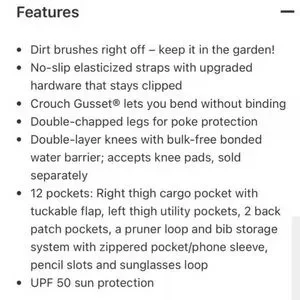 Overalls with a rare cute garden print featuring flowers and watering cans. Lightweight with great stretch, very durable. These overalls are popular for a reason! These were a gift but the 29" inseam was too short for me. Worn once. Pants can be rolled up and snapped, tons of pockets. Duluth sizes run a little big.