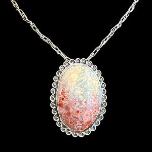 Vintage Mexican Large Sterling silver and leopard jasper pendant