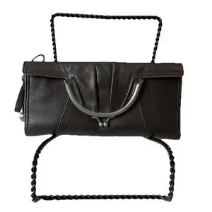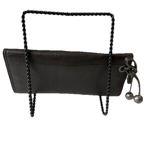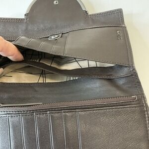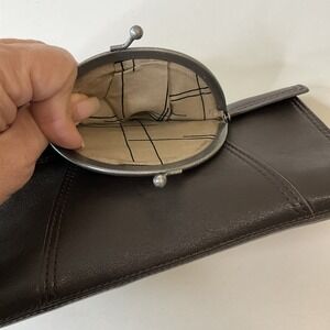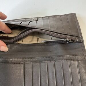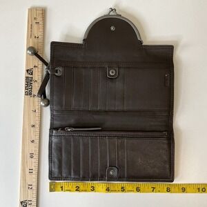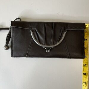 Vintage New Kenzo Leather Wallet Clutch Kiss Lock Coin Purse Brown Boho Retro