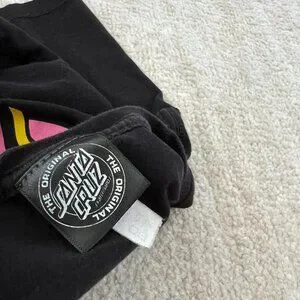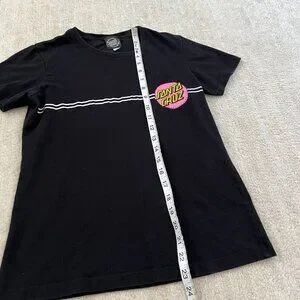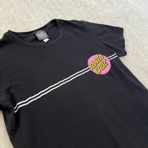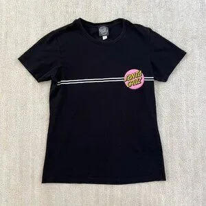 A black short sleeve tee shirt top with Santa Cruz skateboards graphic. Consignor says it fits a S