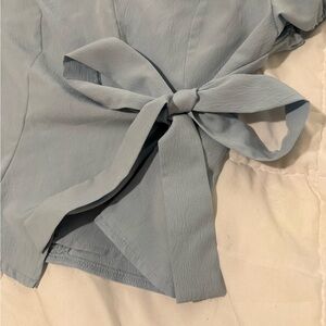 SHEIN Light Blue Puff Sleeve Blouse with Bow Sz Large