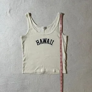 Brandy Melville John Galt Women's XS/S Cream and Navy Hawaii Summer Tank Top