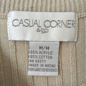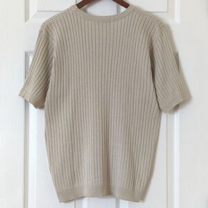 Casual Corner 90's Vintage Cable & Ribbed Knit Short Sleeve Crewneck Top Beige M