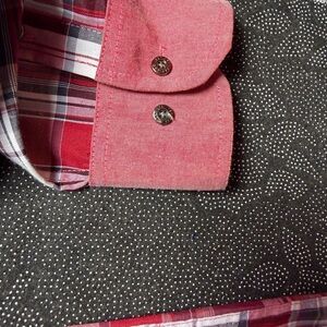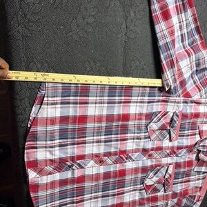 Stylish and comfortable, this men's plaid button-down shirt features a classic red and blue design. Perfect for casual outings, it offers a relaxed fit and timeless style.