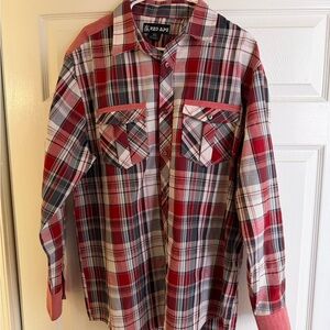 Men's Red and Blue Plaid Casual Button Down Shirt