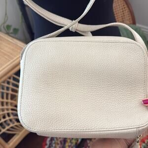 Cuyana Cream Pebbled Leather Tassel Zip Crossbody Camera Bag